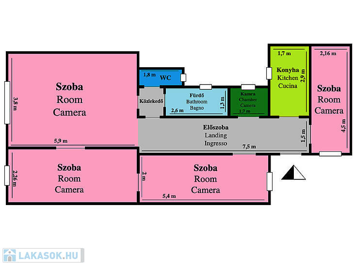Különnyíló szobáinak köszönhetően praktikus elrendezésű, ezáltal két lakás is kialakítható belőle.