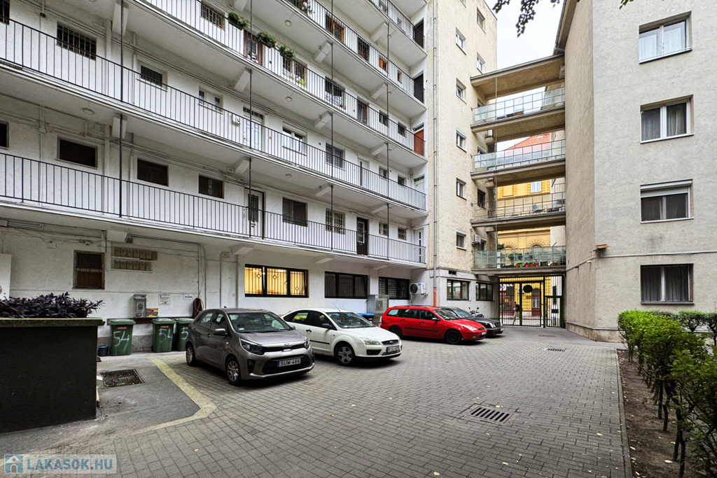 Belső udvari parkoló igényelhető, közös tároló elérhető.