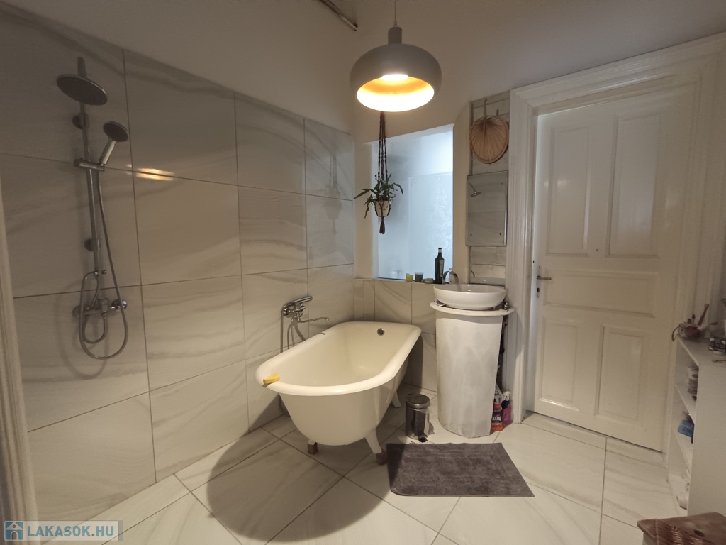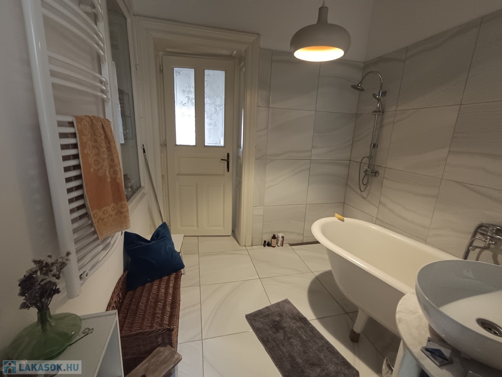 Fürdőszoba: modern, zuhanyzós és lábaskádas, tágas, világos, átszellőztethető
