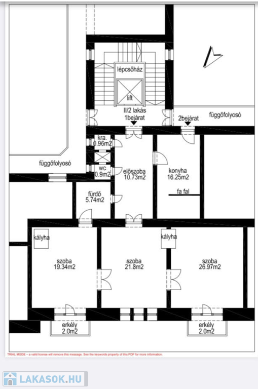2 bejárattal rendelkezik egy a konyha és egy az előszoba felől, továbbá 2 db 2 nm erkély is megtalálható.