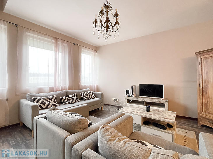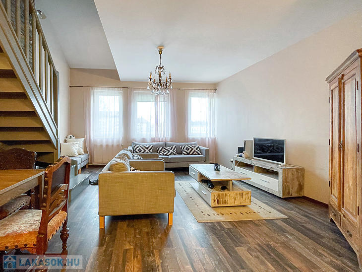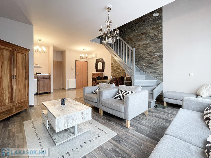 A 2014-ben megújult, parkosított Teleki László téren, egy 2000 után épült, liftes társasház negyedik emeletén (legfelső szintjén) eladó egy kétszintes, két fürdőszobás újszerű lakás.