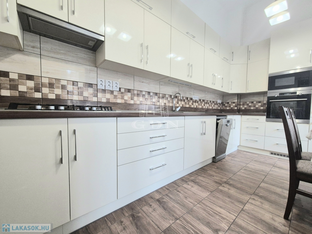 VIII. kerületben, egyirányú-csendes mellékutcában, kis lakásszámú, jó állapotú, két szintes társasház első emeletén kínálok eladásra, egy 79 m2-es, utcai nézetű-világos, felújított, ablakos konyhás, két egymásból és külön is nyíló szobás, galériázott, minőségi - gépesített konyhabútorral rendelkező téglalakást.