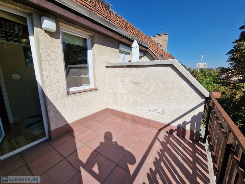 A lakáshoz tartozik egy 7 négyzetméteres erkély, amely kellemes kinti pihenőhely lehet a friss levegőn.