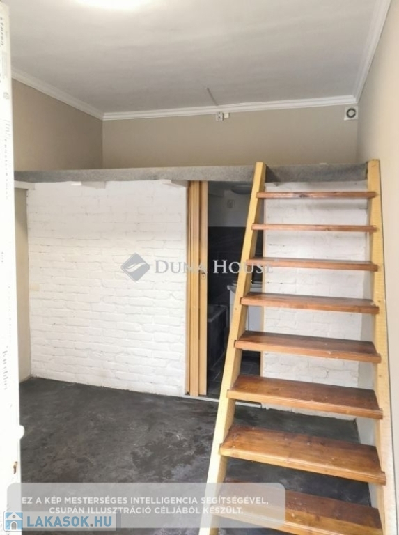 Az ingatlanba belépve a lakás legnagyobb, nappali + konyha funkciójú helyiségébe érkezünk meg. A helyiség jól berendezhető, egyedülállók, esetleg párok számára is megfelelő életteret kínál. A helyiségből egy fürőszoba + wc helyiség nyílik, melyben a fürdéshez kád is rendelkezésre áll. A fürdőszoba feletti rész, a lakás belmagasságának köszönhetően hálógalériaként funkcionál, így a lakás szeparált hálórésszel is rendelkezik.