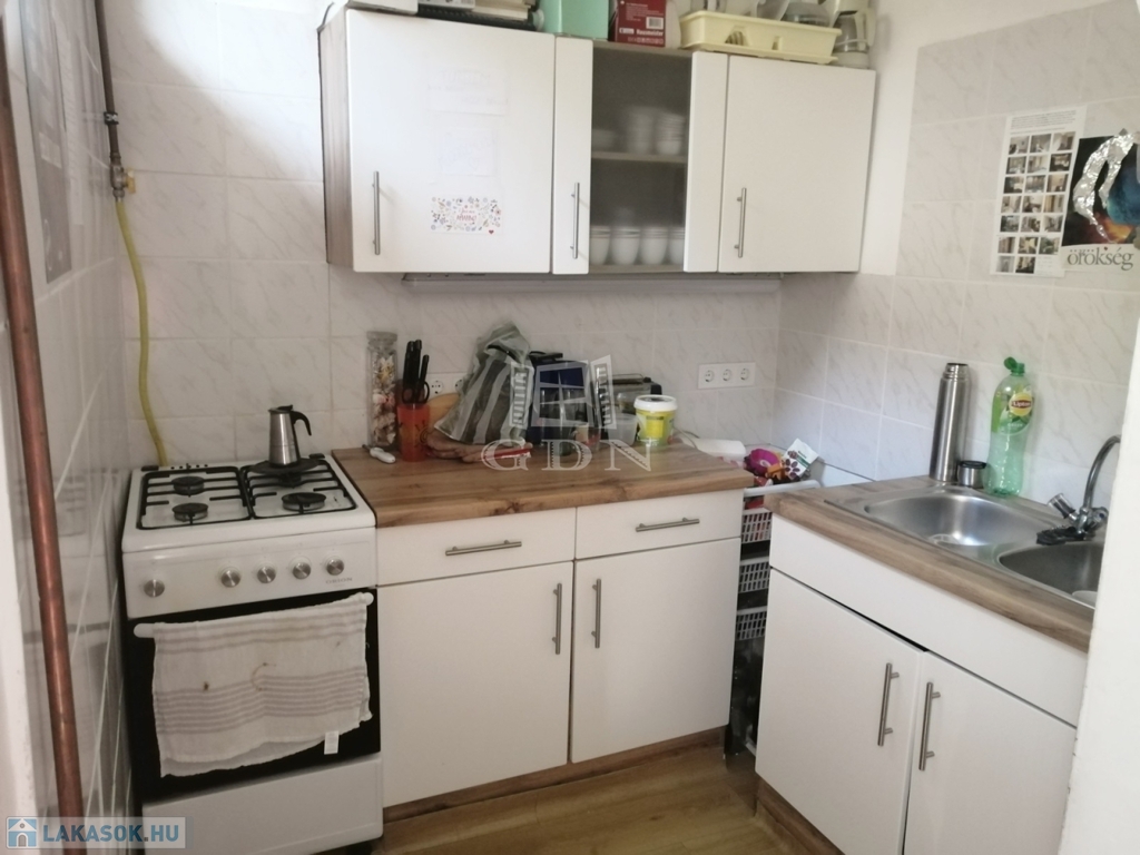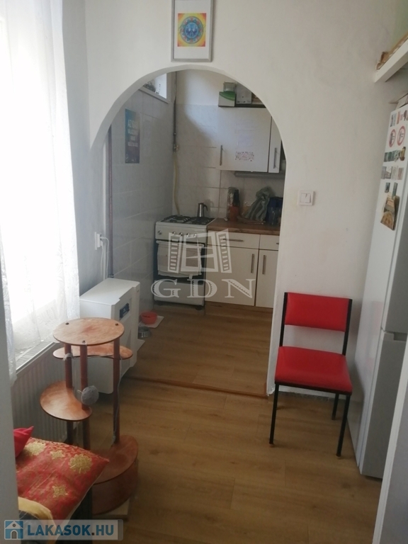 Tégla építésű HÁZBAN, udvarra néző, első emeleti, két szobás, ablakos konyhás 39 nm ingatlan.