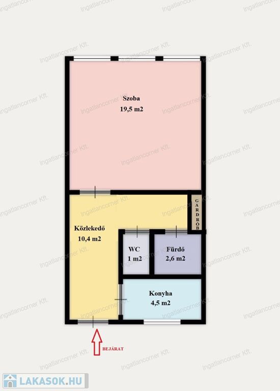 • fürdő: 2,6 m²