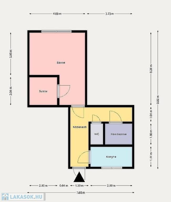 A 20 m²-es szoba egy részét gipszkarton fallal leválasztva kialakításra került egy 4 m²-es hálórész. A szoba világos, klímával felszerelt.