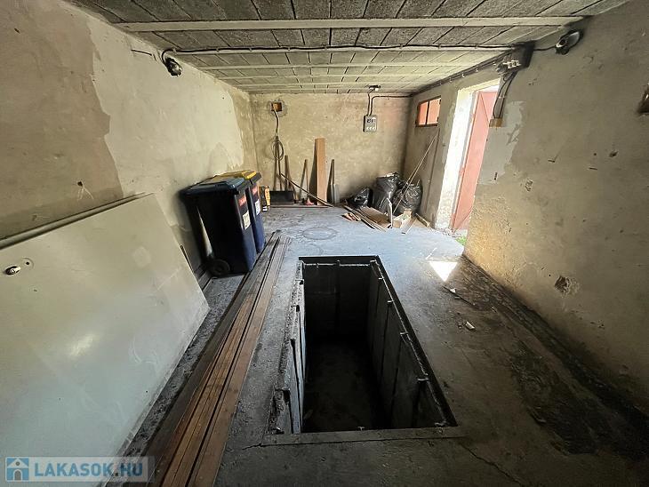 Zárt udvaron belüli fedett, szerelőaknás garázzsal rendelkezik.