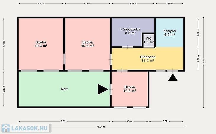 Eladó egy 73 nm-es, teljeskörűen felújított, 3 szobás lakás, amely igény esetén könnyedén 4 szobássá alakítható, és a tetőtér is beépíthető, amivel körülbelül 20-30 négyzetmétert hozzá lehet adni az alapterülethez.
