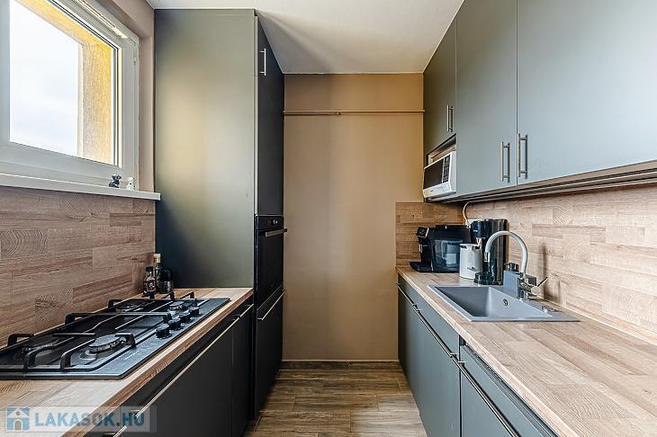 Árkád üzletközponttól pár perc sétára kínálunk eladásra egy 71 nm-es, 3 szobás, hallos, erkélyes, ablakos konyhás, SZIGETELT HÁZBAN, 6. emeleten lévő, felújított állapotú panellakást.