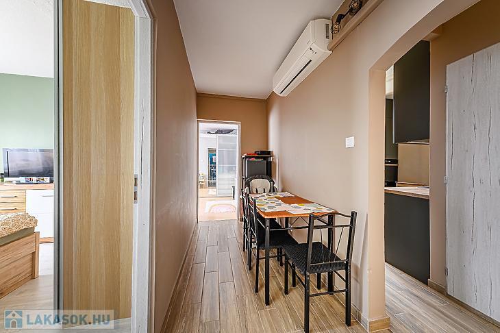 A lakásban a nyílászárók cserélve lettek, részben szúnyoghálóval ellátottak. A vezetékek cseréje is megtörtént. Az ingatlan minden helyisége különnyíló. Fűtése távfűtés egyedi méréssel. Közös költsége 16.875.-, rezsije kb. 30.000/hó.