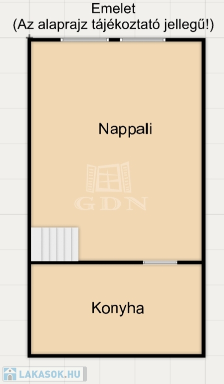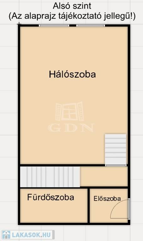 Az alsó szinten található a hálószoba és a fürdő, az emeleti szinten pedig egy tágas nappali kapott helyet – ideális elrendezés kényelmes mindennapokra.