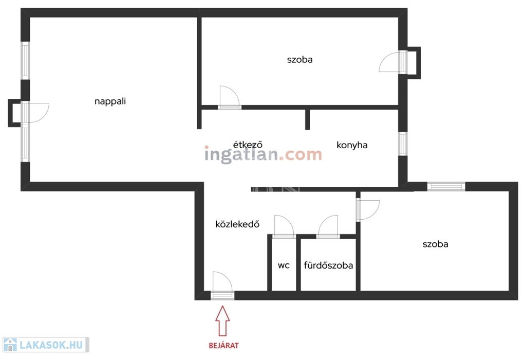 A lakásban találunk egy hatalmas nappalit, 2 hálószobát, közlekedőt (hatalmas beépített szekrénnyel), tágas étkezőt és konyhát, sarokkádas fürdőszobát, külön WC-t, valamint két francia erkélyt melyeknek, illetve az ingatlan fekvésének köszönhetően egész nap világos, napfényes élettérrel találkozhatunk.