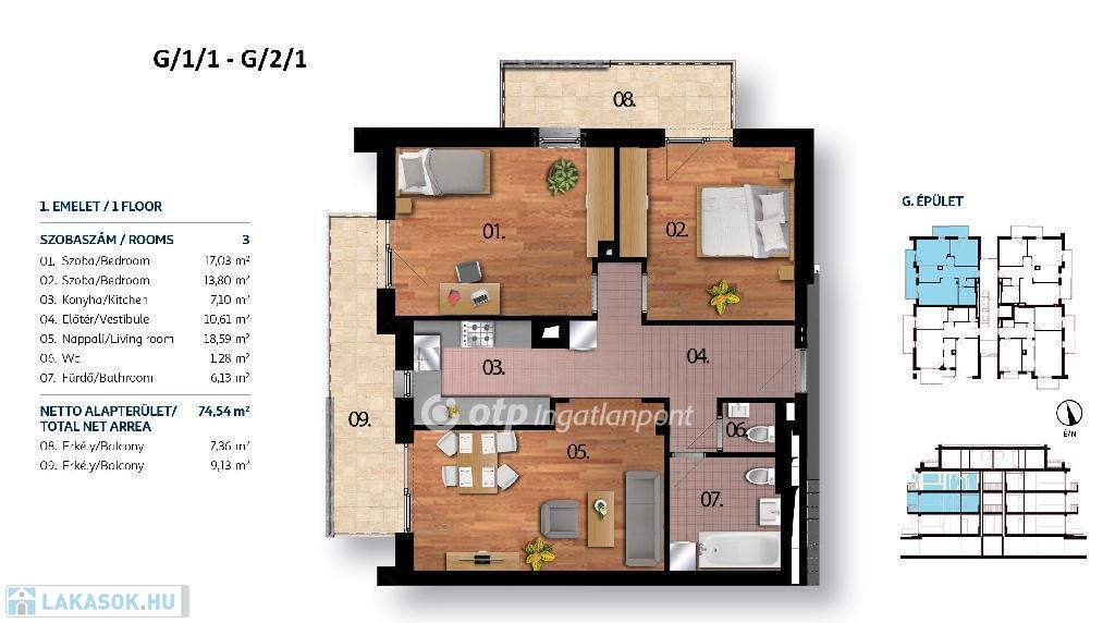Lakások mérete: 43 nm-es, 1,5 szobás lakástól a 150 nm-es, 5 szobás és a tetőteraszos, exkluzív penthouseig.