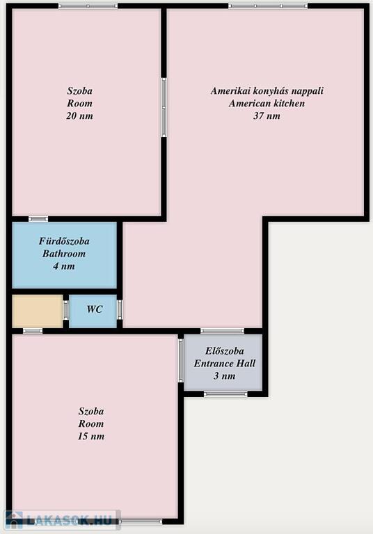 Igény szerint könnyedén kialakítható amerikai konyhás nappali + 2 hálószobás, de akár amerikai konyhás nappali + 3 hálós elrendezés is.