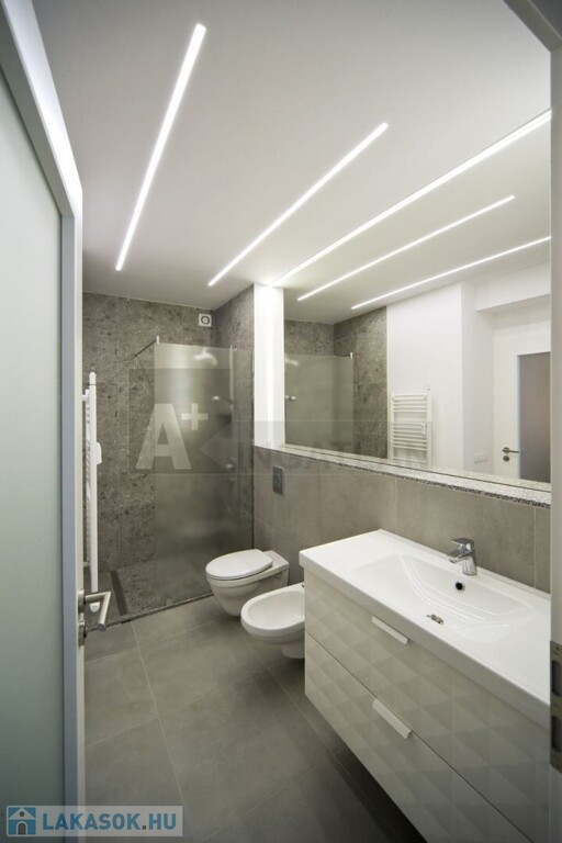 A dizájn lámpatestek , mennyezeti led szalagok emelik ki a tereket.