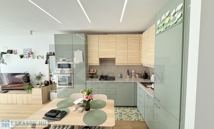 A vételár részét képezik : a gépesített konyhabútor és a méretre gyártott , 3 gardrób szekrény is , amelyek illeszkednek a lakás egységes stílusához.