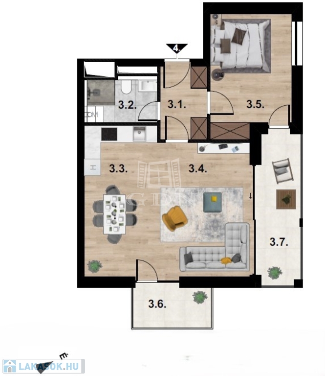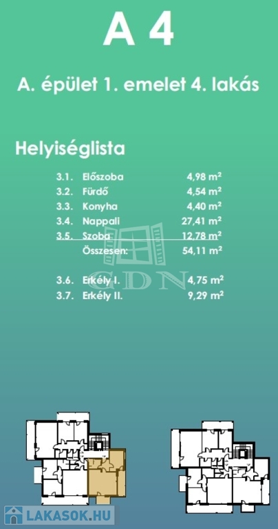 49, 54, 71, 80 nm2 méretű ingatlanok közül lehet választani. Földszinti lakások saját terasszal és kertrésszel míg az 1. és 2. emeleti lakások nagy teraszokkal rendelkeznek.