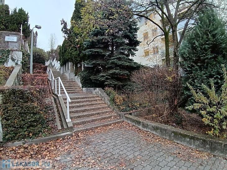 A társasház és a közös kert is szépen karbantartott és gondozott.