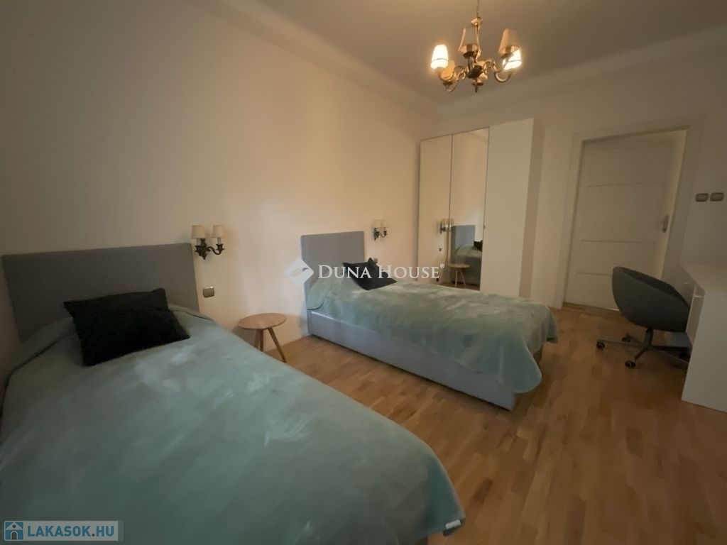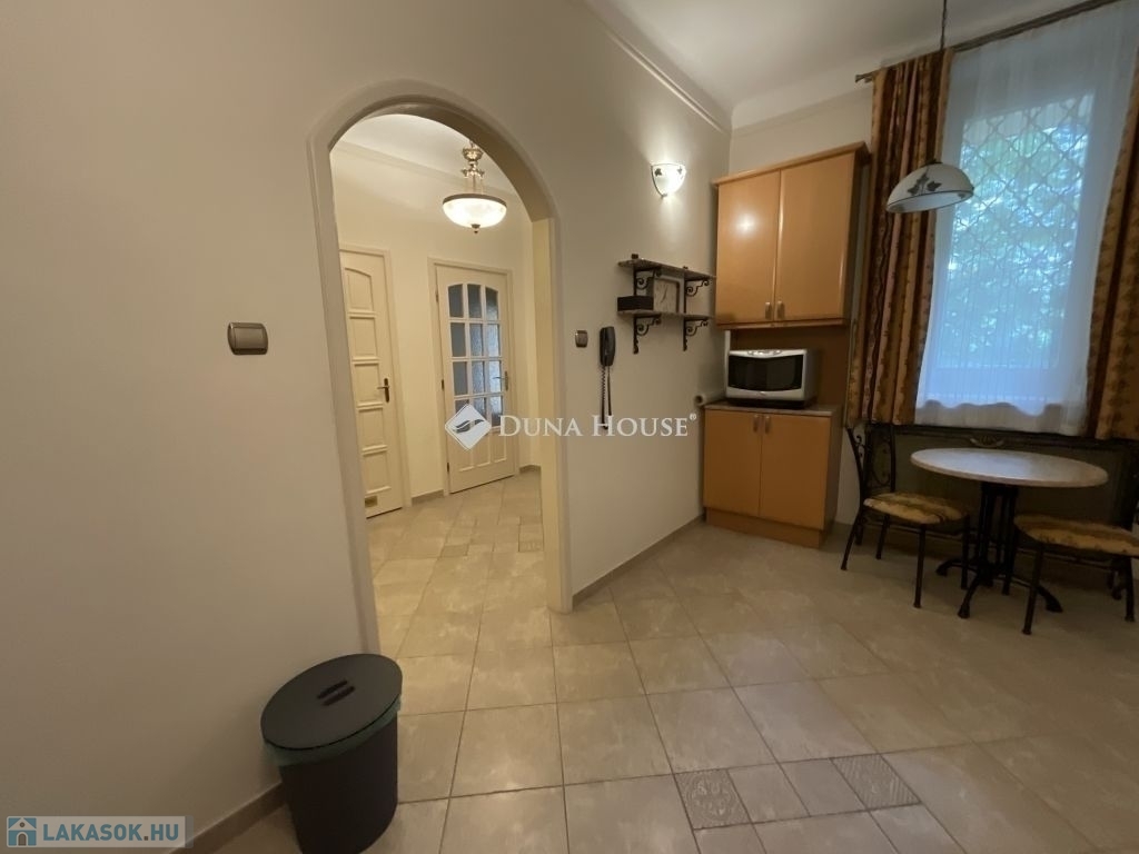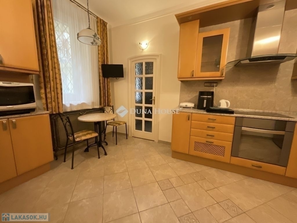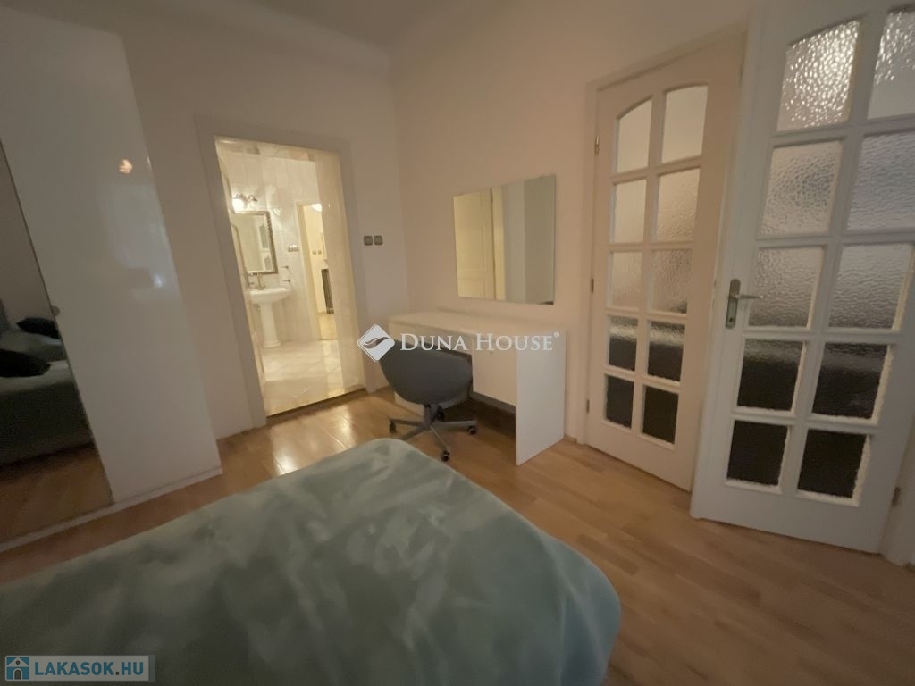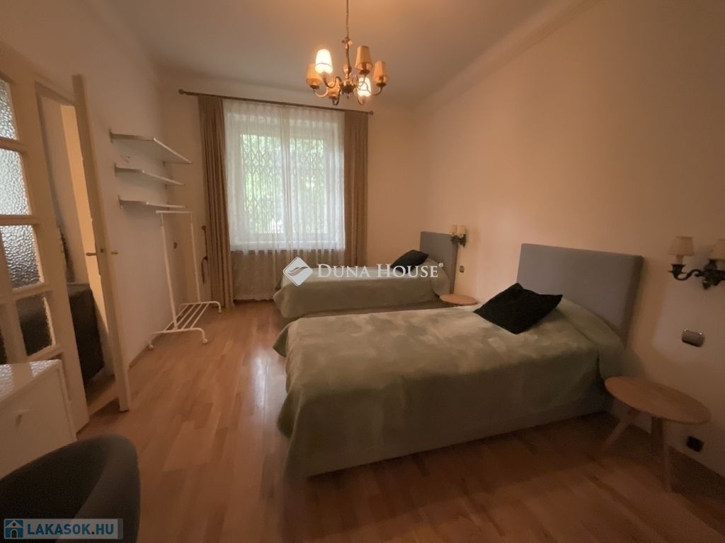 magasföldszinten található, 74 négyzetméteres lakás ablakai kertre néznek,előttük közvetlenül zöld lombú fák állnak, így reggelente madárcsicsergésre ébredhetünk. Az ajtón belépve tágas terek fogadnak: nagy, kényelmes szobák, jól felszerelt konyha étkezővel. A konyha nagyméretű ablaka a ház belső udvarára néz. A sarokkádas fürdőszoba tágas, letisztult és praktikus. A lakásban található még egy 2 nm-es, ablakos helyiség, amely kiválóan alkalmas akár dolgozószobának, vagy gardróbnak is. Az ingatlan kisebb családnak, pároknak is kényelmes otthona lehet, de akár irodává is átalakítható.A nyári melegben is kellemesen hűvös lakásban jelenleg nincs klíma, de ennek kiépítése is megoldható.