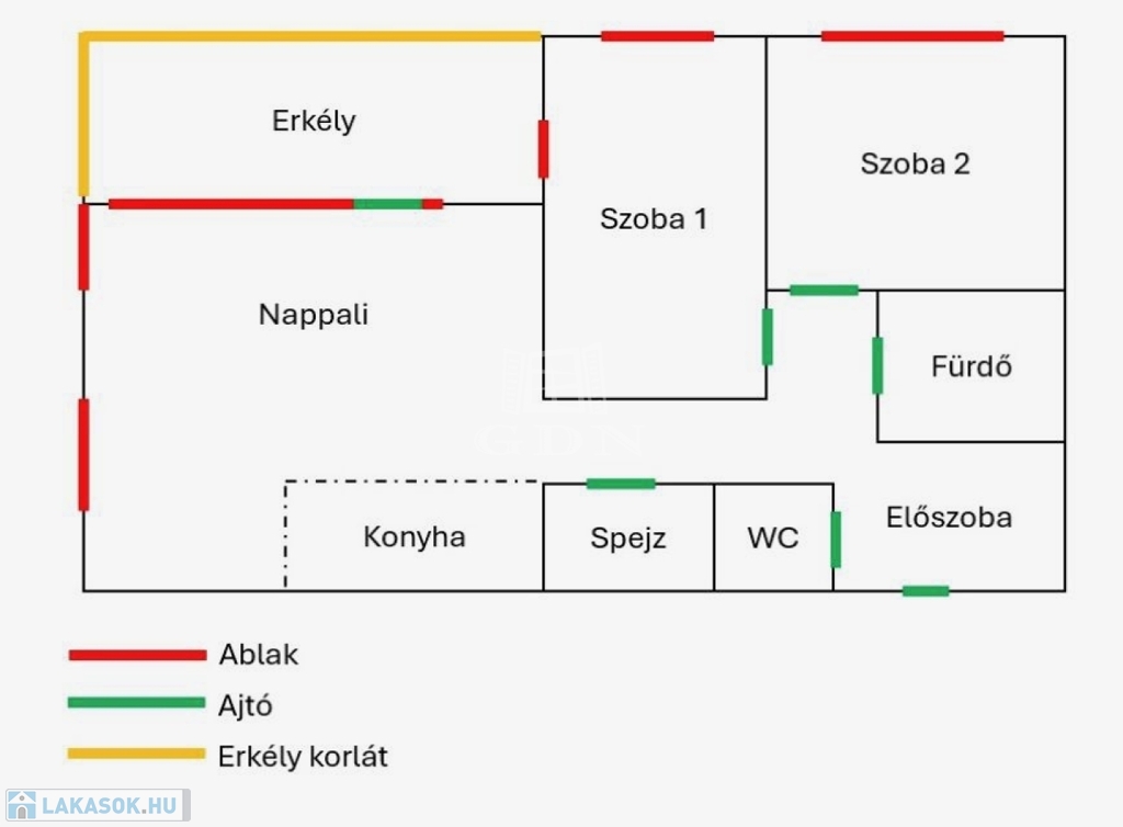 A helyiségek elrendezését, méreteit lásd az ALAPRAJZON !