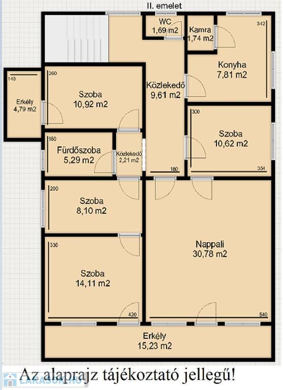 A 100 nm-es lakótérhez tartozik még egy utcafronti 15 nm-es terasz, illetve egy oldalsó 5 nm-es erkély.