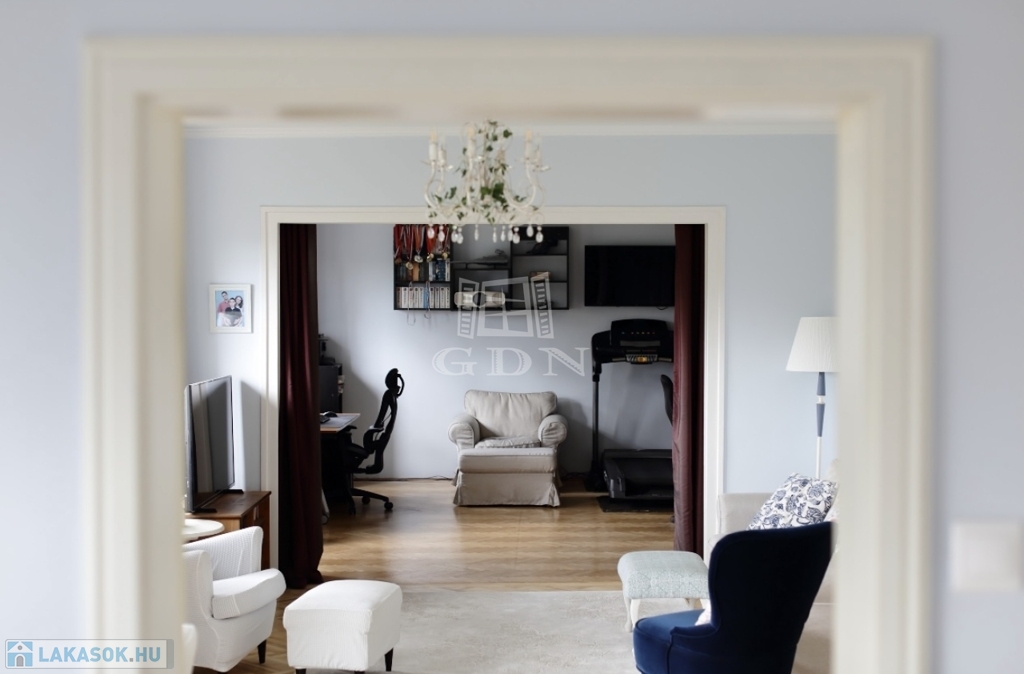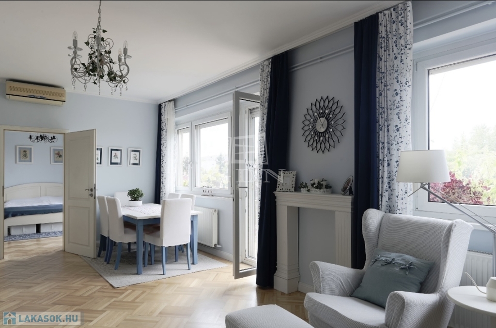 • Tágas, rendkívül világos, déli tájolású nappali felújított parkettával