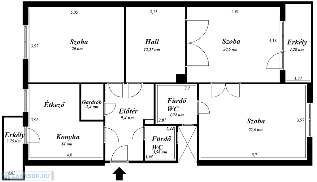 A beosztás jelenleg is kiváló, de akár tovább is alakítható pl. amerikai konyhás nappali + 3 hálószobássá.