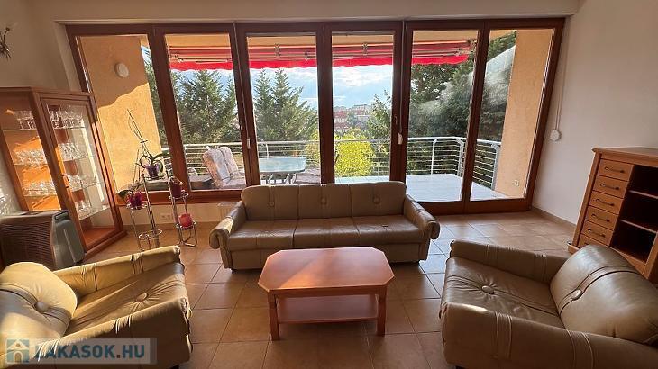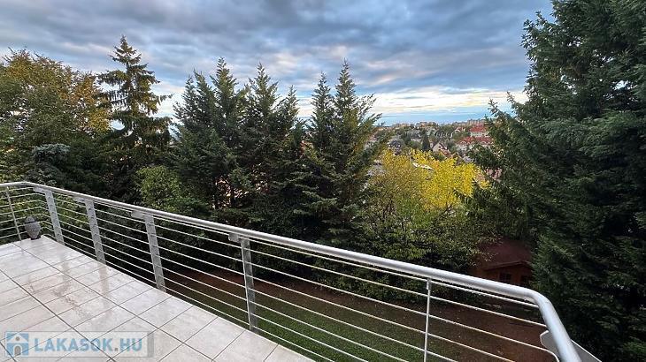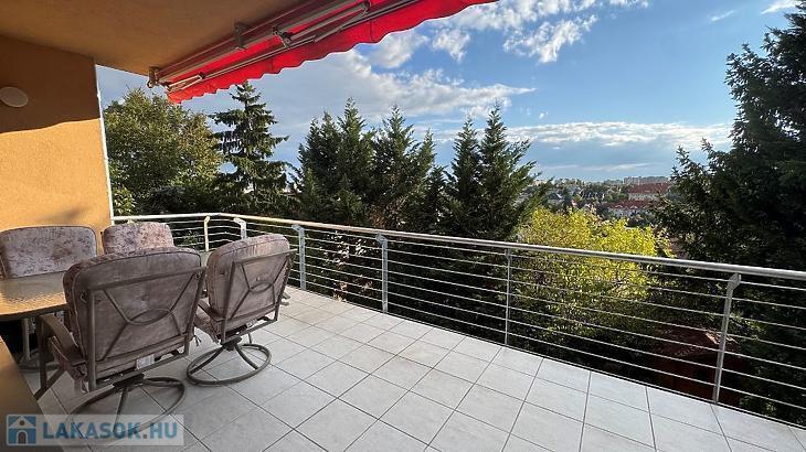 A nappaliból nyílik egy 12 nm-es délnyugati fekvésű, félig fedett, motoros árnyékolóval ellátott terasz, ahonnan gyönyörű panoráma tárul elénk. Illetve az egyik hálószobában kialakításra került még egy oldalsó, keleti fekvésű 2 nm-es erkély.