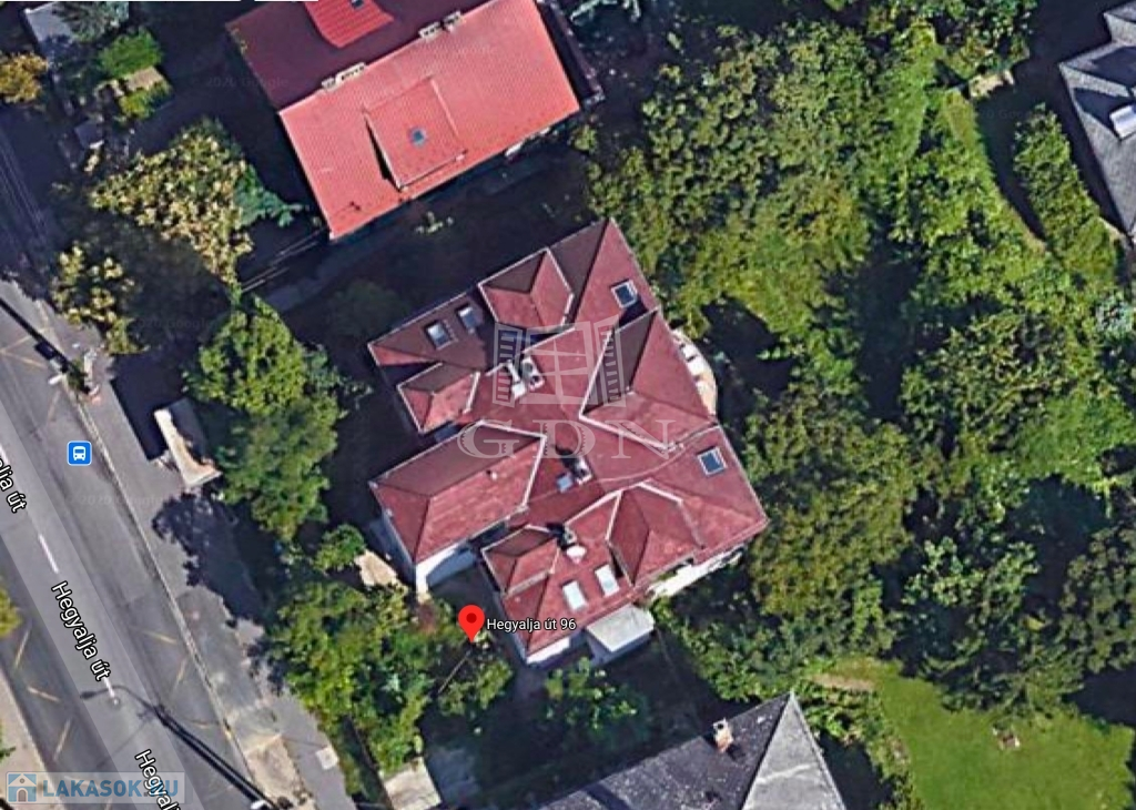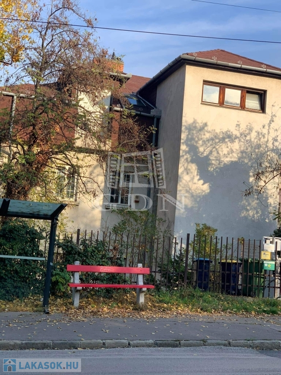 A lakás az utca felöl félemeleten, a kert felöl pedig az 1. emeleten található, egy 7 lakásos vila épületben, 1030 nm-es telken.