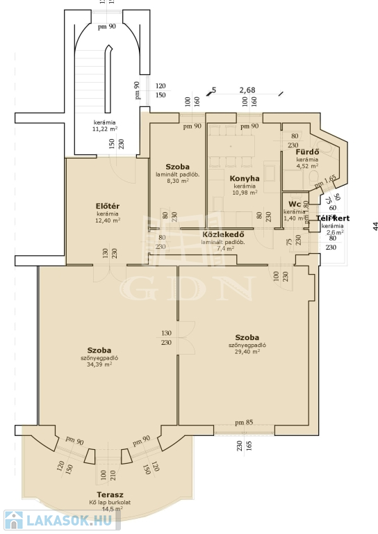 A lakáshoz tartozik egy 13 nm-es tároló is.