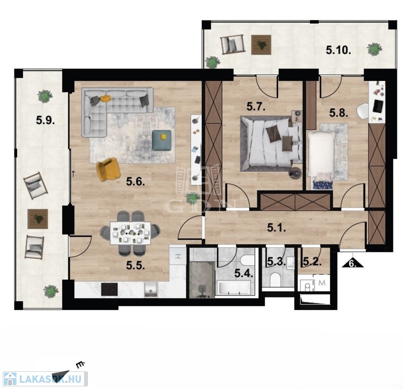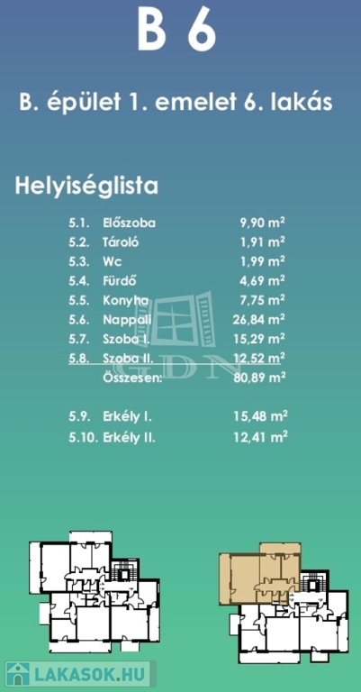 49, 54, 71, 80 nm2 méretű ingatlanok közül lehet választani. Földszinti lakások saját terasszal és kertrésszel míg az 1. és 2. emeleti lakások nagy teraszokkal rendelkeznek.