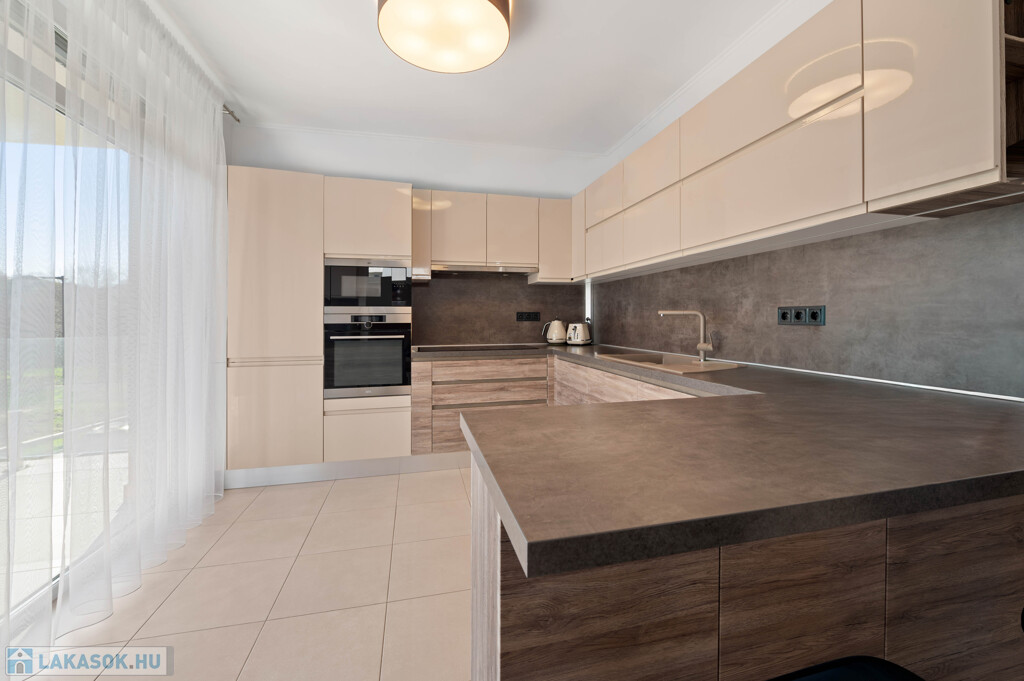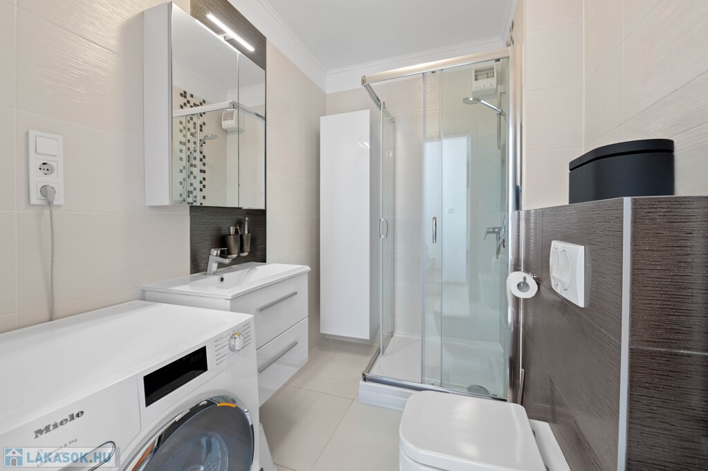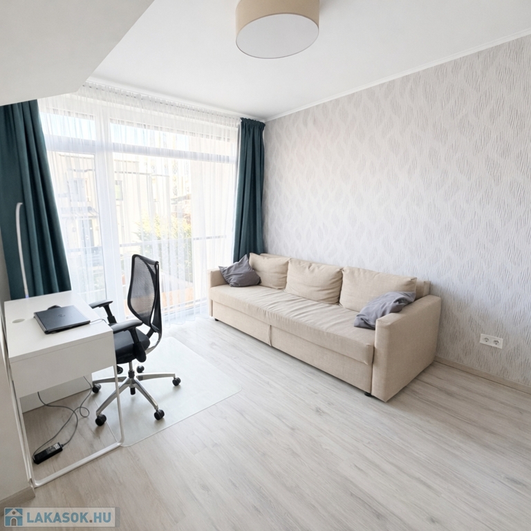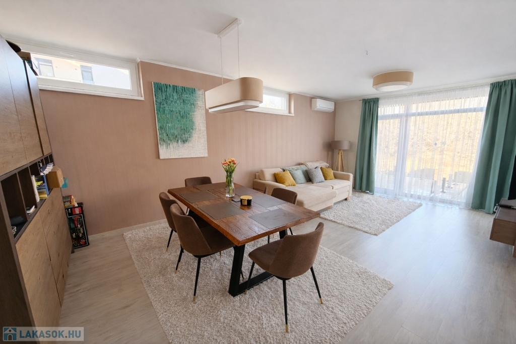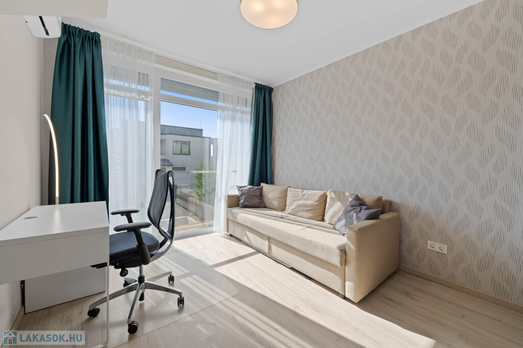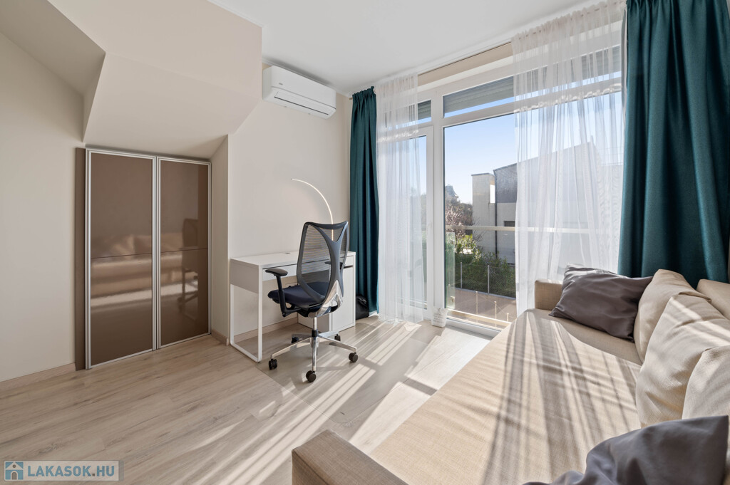 A lakás egy 4 lakásos, modern társasházban található. Nyugodt, rendezett lakóközösség és csendes, kertvárosias környezet jellemzi.
