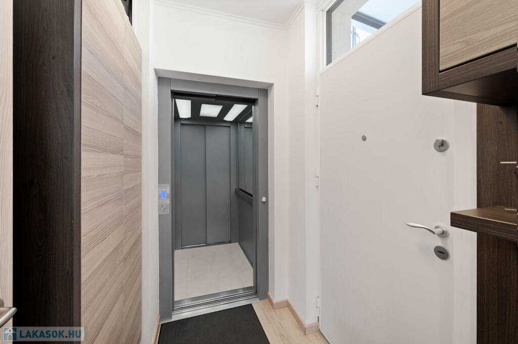 A lakás egyik igazán ritka értéke, hogy kulcsos, privát lift érkezik közvetlenül a lakásba, amely különleges kényelmet és diszkréciót biztosít.