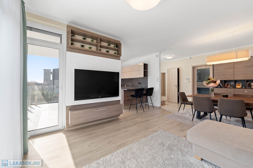Az ingatlan 2019-ben épült, modern műszaki tartalommal és igényes kivitelezéssel. A lakás világos, jól tagolt terekkel rendelkezik, minden szobához saját terasz vagy erkély kapcsolódik.