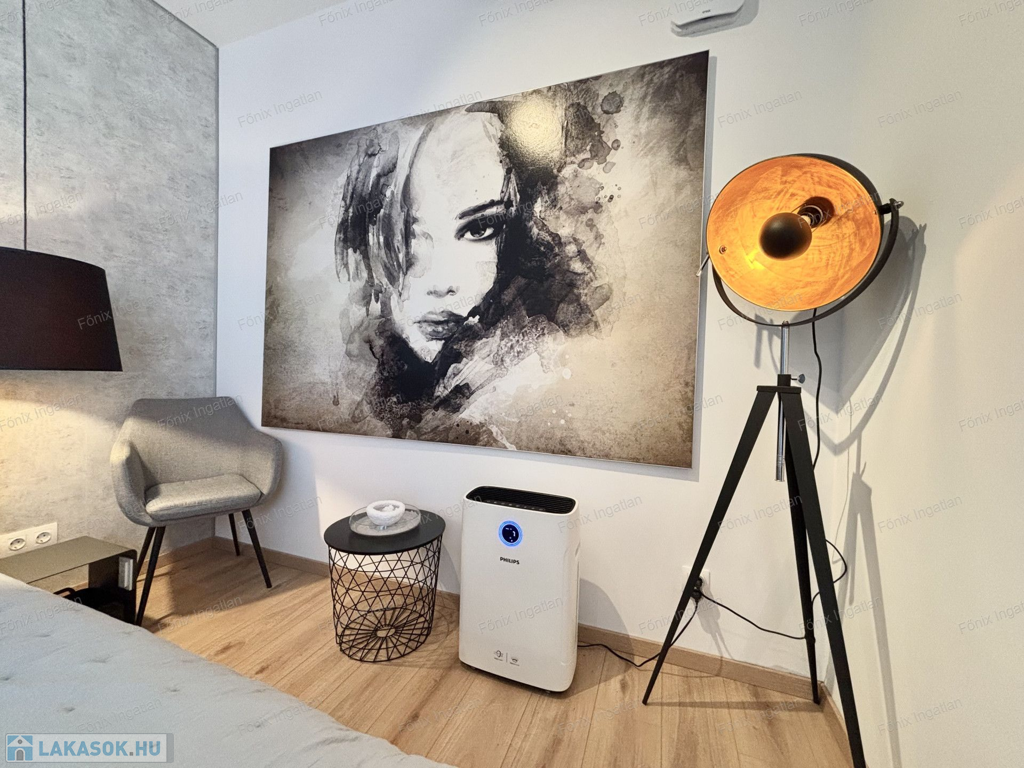 Modern, letisztult stílusban készült, részben bútorozott. A hűtésről és a fűtésről hőszivattyús rendszer, padlófűtés és mennyezeti hűtő-fűtő klíma gondoskodik, amely egész évben kellemes hőmérsékletet teremt.