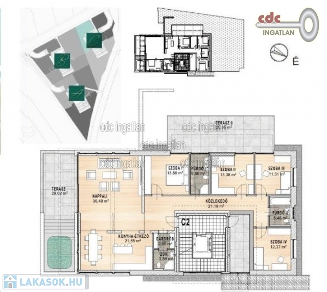 Madárhegyen, új építésű, örökpanorámás luxuslakás eladó! XI. kerületben, Madárhegyem kínálom megvételre ezt 146 m2-es + 60 m2-es teraszos, 5 szobás, amerikai konyhás, 3 fürdőszobás, kertkapcsolatos, 225 m2-es kizárólagos kerthasználattal, napfényes, exkluzív ingatlant. Az 1488 m2-es telken elhelyezkedő, 3 szintes épület első emeletén található a lakás, ami a telek lejtéséből adódóan kertkapcsolatos is. A feltüntetett ár nem tartalmazza a két állásos teremgarázs beállóhelyet, ahol elektromos autó töltésére is van lehetőség. A leálló része fűtött, így télen is kényelmesen használható. A beállók mellett helyezkedik el a lakáshoz tartozó tároló is. MŰSZAKI JELLEMZŐK: Levegős hőszivattyús fűtésrendszer, ami minden szobában, netes eléréssel is egyedileg szabályozható fűtéssel, hűtéssel, nappaliban, konyhában, étkezőben, fürdőkben, előtérben, folyosón padlófűtéssel kiegészülve. Hővisszanyerős, entalpiás Vaillant szellőztető rendszer minden helységben. 500 literes használati melegvíz tartály. Vízlágyító rendszer. Internorm műanyag ablakok, erkélyajtók és emelő toló ajtó 0,7 Uw értékkel. A falszerkezet Porotherm HS 44 cm vastag elemből készült 10 cm-es kőzetgyapot szigeteléssel. Lift. Fűtött garázslejáró. Távirányítású elektromos alumínium zsaluzia és redőnyök. Napelem előkészítés. Laufen szaniterek, fürdőszoba bútorok és tükrök. Hüppe kabinok. Geberit WC tartályok. Hansgrohe Metris S csaptelepek, esőztetős zuhanyok. Elektromos törölköző szárítók. Méretre szabott, beépített TH Design konyha és sziget opcionálisan Neff gépekkel, hűtő nélkül. Videó kaputelefon. Telekom széles sávú internet (üvegkábel). Paradox, webes riasztórendszer. Biztonsági bejárati ajtó ujjlenyomat olvasóval. Garázsban elektromos autótöltő kiépítés (11kW). A tároló és a teremgarázs helyek megvásárlása kötelező. Ára + 40 Millió Ft. Az ingatlan azonnal birtokba vehető! Irányár: 269.000.000 Ft.
