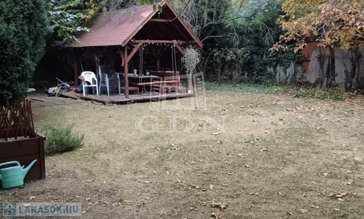 Csendes udvari környezet, zöld kerttel és pavilonnal – a lakók közösen használják.