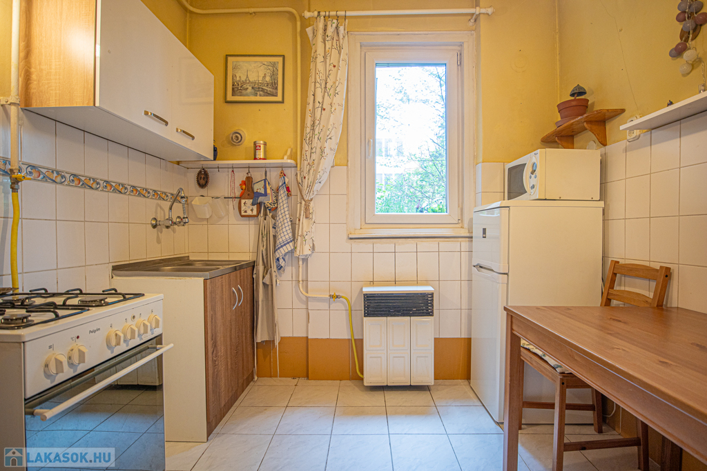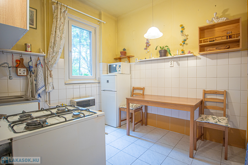 Eladó a XI. kerületben a Bikás park közelében, egy jó állapotú társasházban lévő, 43nm-es, jelenleg 1 szoba+hall-os, étkező konyhás, DNY-i és ÉK-i fekvésű lakás.