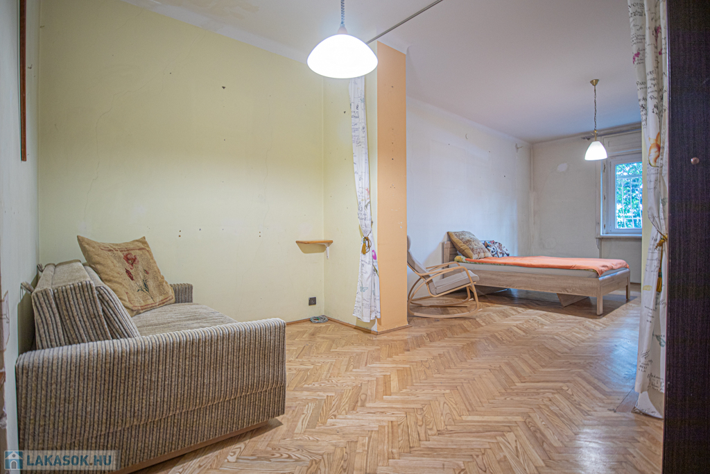 A lakás jelenleg is jó beosztású, de akár tovább is alakítható 2 szobássá, a fotók között elérhető a lakás alaprajza és átalakítási javaslat is.
