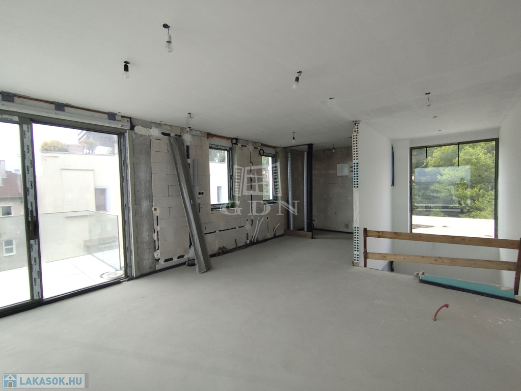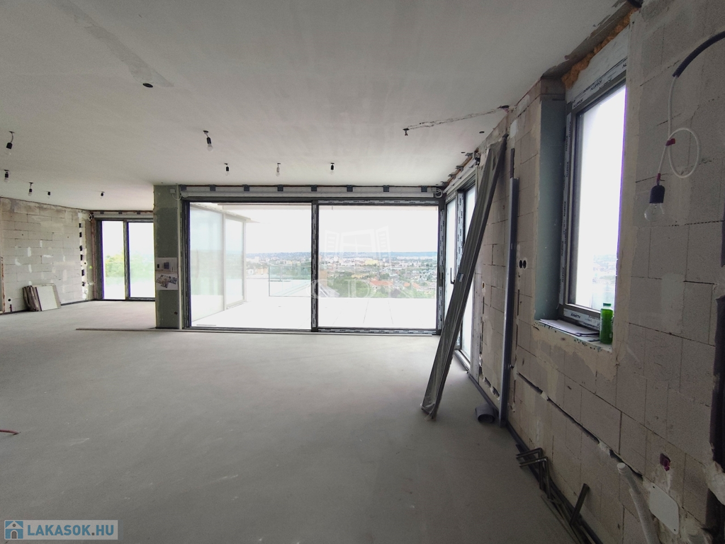 A felső szinten nappali, konyha, étkező, vendégmosdó és a lenyűgöző panorámás tetőterasz várhat pergolával, medencés résszel. Az alsó szinten 3 hálószoba, 2 fürdő és további teraszok kaptak helyet. A lakás 70%-os készültségben van – így új tulajdonosa saját ízlése szerint alakíthatja ki, vagy kulcsrakészen is megvásárolhatja. A garázs alkalmas lehet szauna, welness kialakítására a közel 80 m2-en.