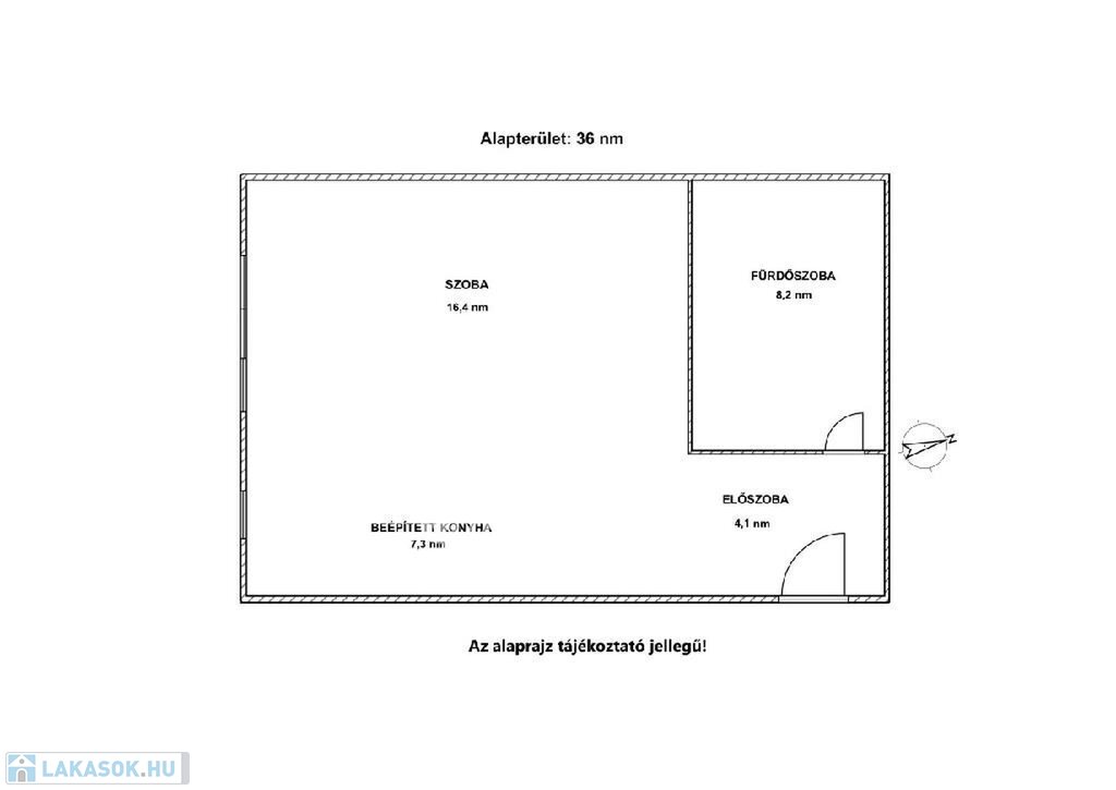 Nappali, előszoba, fürdőszoba, valamint konyha áll rendelkezésre a kiváló elrendezésű lakásban.