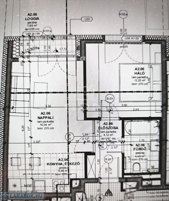 A hirdetésben szereplő lakás 43,32 m²-es, 2 szobás,2. emeleti, és tartozik hozzá egy 1,86 m²-es loggia is.