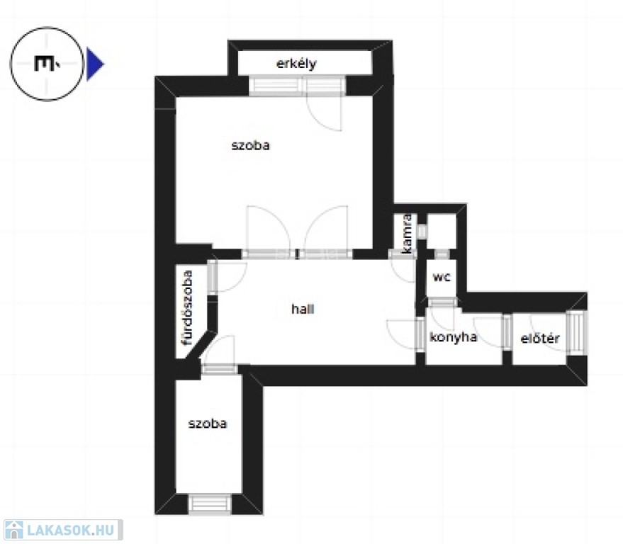 Az ingatlan egy rendezett, 11 lakásos társasház második emeletén helyezkedik el, zárt lépcsőházból megközelíthető. A lakás 1+1 félszobás elrendezésű.