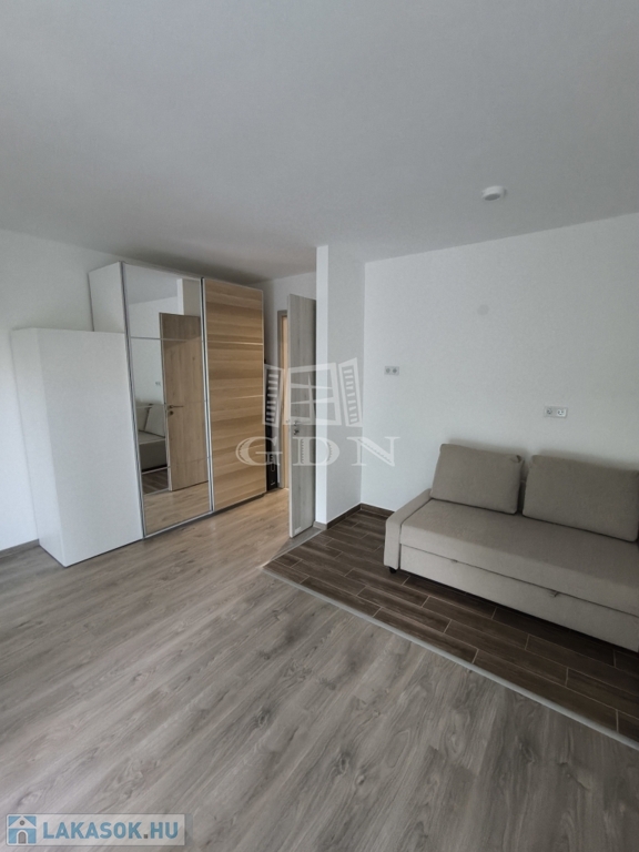 A 33 négyzetméteres ingatlan a második emeleten helyezkedik el. Egy szobával rendelkezik, melybe a konyhai beépítés is előkészített.