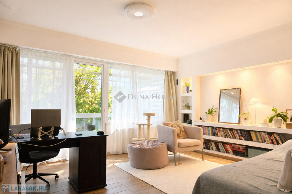 A környék csendes, parkosított, madárcsicsergős övezet, mégis kiváló közlekedéssel: 41-es villamos, 87-es és 187-es buszok a közelben M1M7 autópálya felhajtó 5 perc Budaörsi bevásárlóközpontok, iskola, óvoda, benzinkút pár percen belül