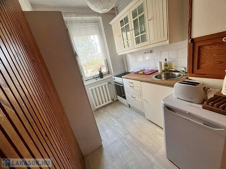 A lakás egyik nagy előnye az ablakos konyha–étkező, amely világos és jól szellőztethető, valamint a franciaerkély, ami tovább növeli a nappali térérzetét. A fürdőszoba néhány éve felújításon esett át, így az már korszerűbb állapotban várja új tulajdonosát. Az épület liftes, ami kényelmes közlekedést biztosít minden korosztály számára.