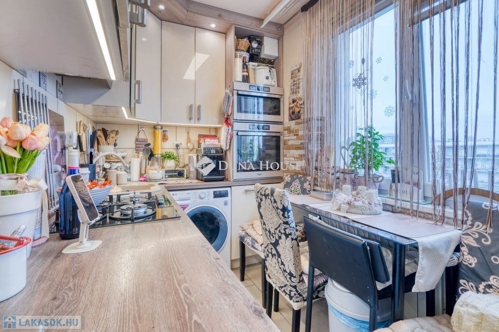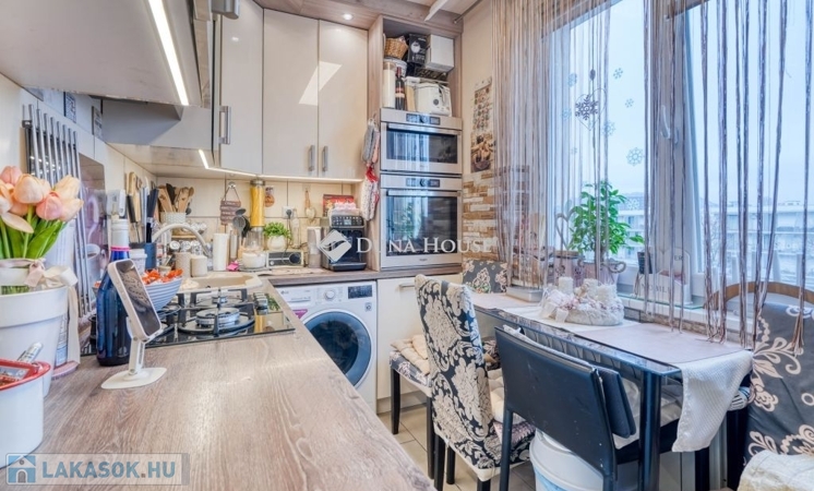 Új, beépített, gépesített konyha Whirlpool prémium háztartási gépekkel (sütő, mosogatógép, mikró, elszívó mind garanciális), teljes esztétikai és műszaki megújítás, új burkolatok, radiátorok cseréje modern, energiatakarékos típusokra, beépített loggia, beépített szekrények, villanykandalló, kamerarendszer a lakásban is kiépítve