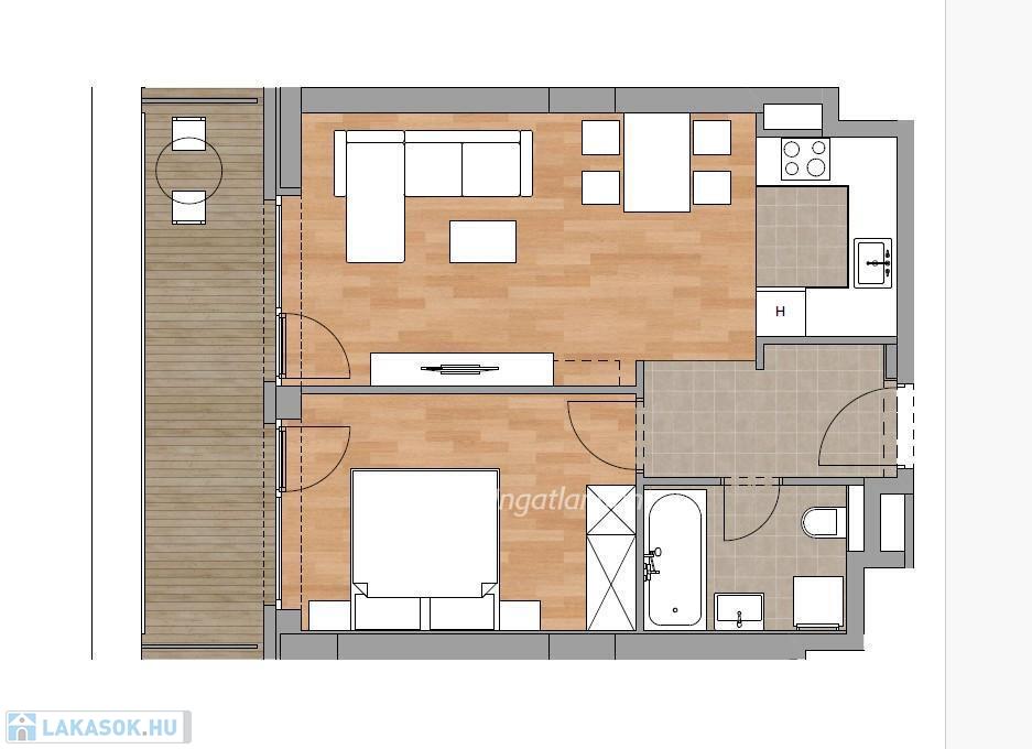 nettó 43,20 m2 + 10,03 m2 erkély.