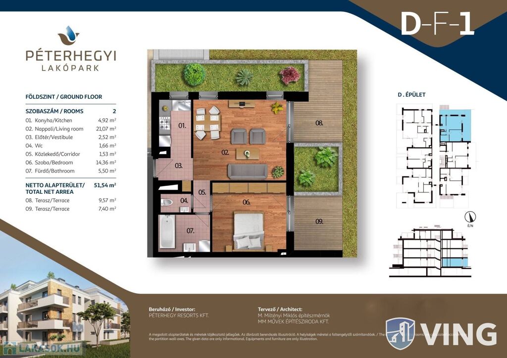 Alapterülete 51,54 m2 + 16,97 m2 terasz.